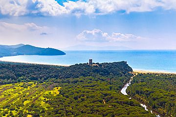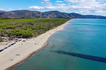 Cala di Forno est la plage la plus au sud du Parc Naturel de la Maremme. Nichée entre les collines de Talamone et Collelungo, cette plage sauvage et préservée s’étend sur environ 1,5 km de sable fin, bordée de hautes dunes sculptées par le vent et couvertes de végétation méditerranéenne. On y observe des renards, daims, sangliers et le majestueux faucon pèlerin. Les falaises environnantes ajoutent au charme naturel du site.