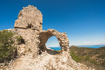 Au moyen de deux rampes latérales, nous montons à l'étage supérieur où nous trouvons une autre terrasse avec quatre fentes pour les canons qui pointaient vers la mer.